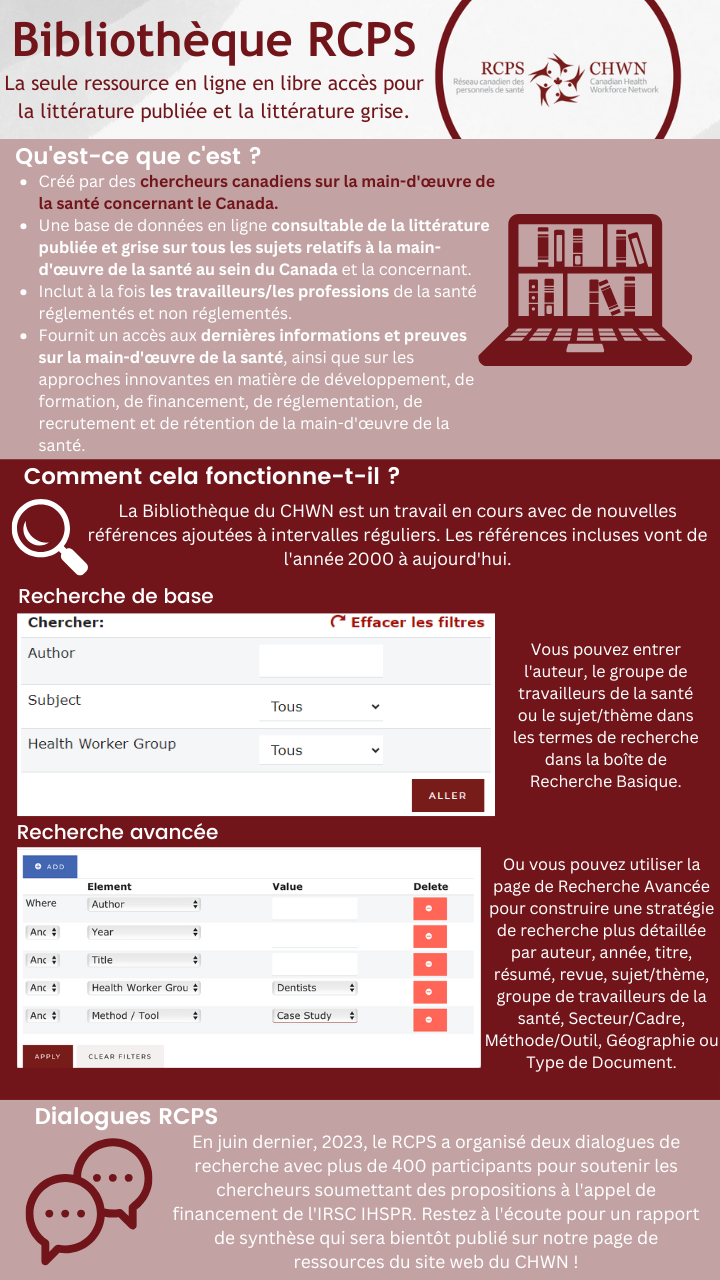 Mai (ACRSPS) - Un examen intégratif d’une décennie de littérature sur les personnels de santé au Canada (2014-2023) : Un aperçu des sujets clés et une analyse préliminaire des lacunes - Ivy Bourgeault, Raha Mirshahi, Sarah Berube, Renata Khalikova & Kennedy Onyechie