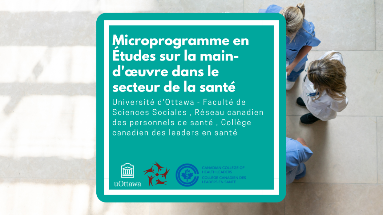 Le RCPS s'est associé à la Faculté des sciences sociales de l'Université d'Ottawa et au Collège canadien des leaders en santé (CCLS) pour offrir un microprogramme bilingue en ligne en études sur la main-d'œuvre dans le secteur de la santé. Le microprogramme comprend deux cours, offerts de façon asynchrone en anglais et en français :